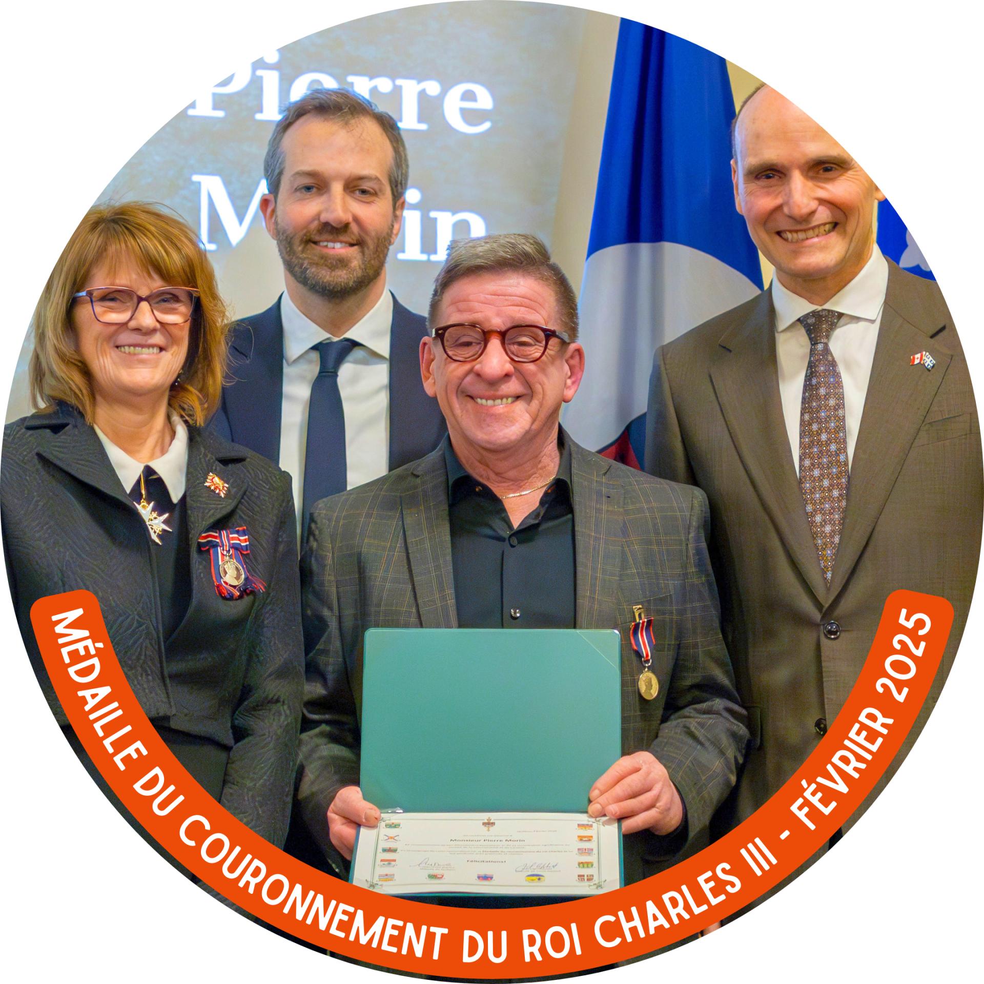 En février, notre directeur général, Pierre Morin, s'est vu décerner la Médaille du couronnement du roi Charles III par le bureau du gouverneur général du Canada. Les critères d'attribution comprennent une contribution significative au Canada ou à une province, un territoire, une région ou une communauté particulière du Canada.
