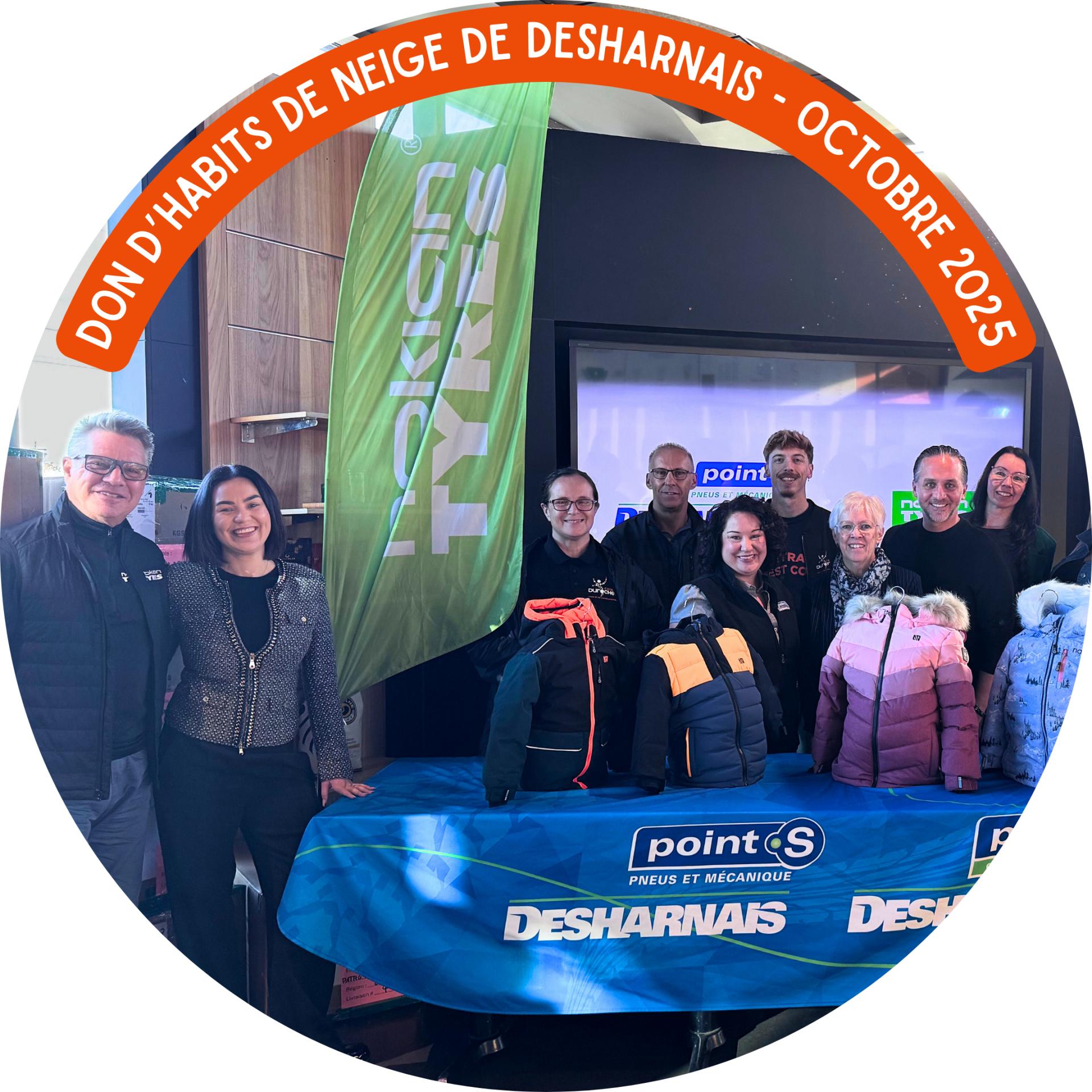 Encore cette année, Desharnais, en partenariat avec Nokian Tyres et N&N inc., designer québécois de vêtements d’hiver, a remis 300 habits de neige à des organismes communautaires, dont le Centre Durocher.