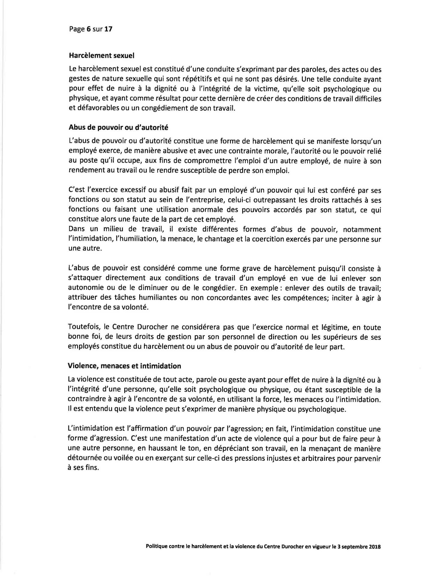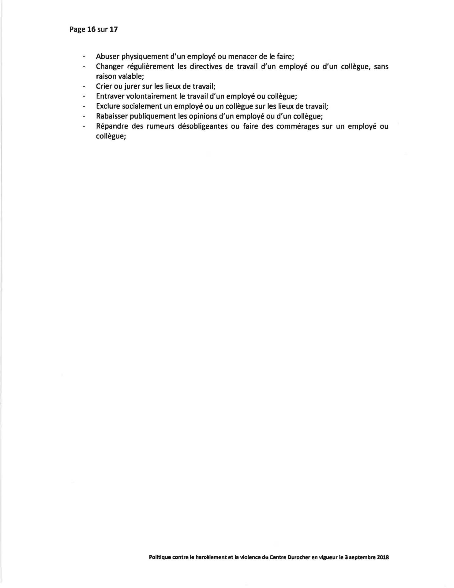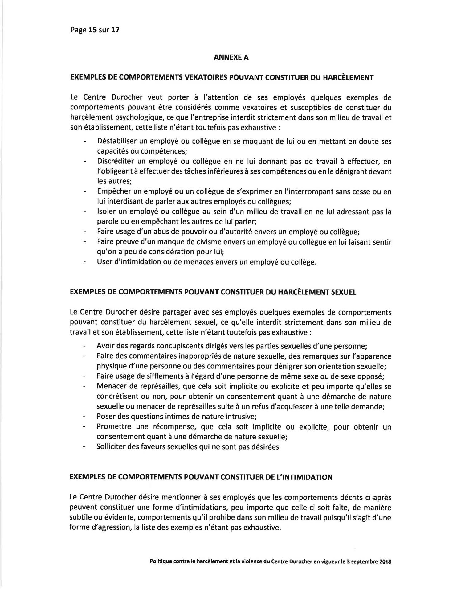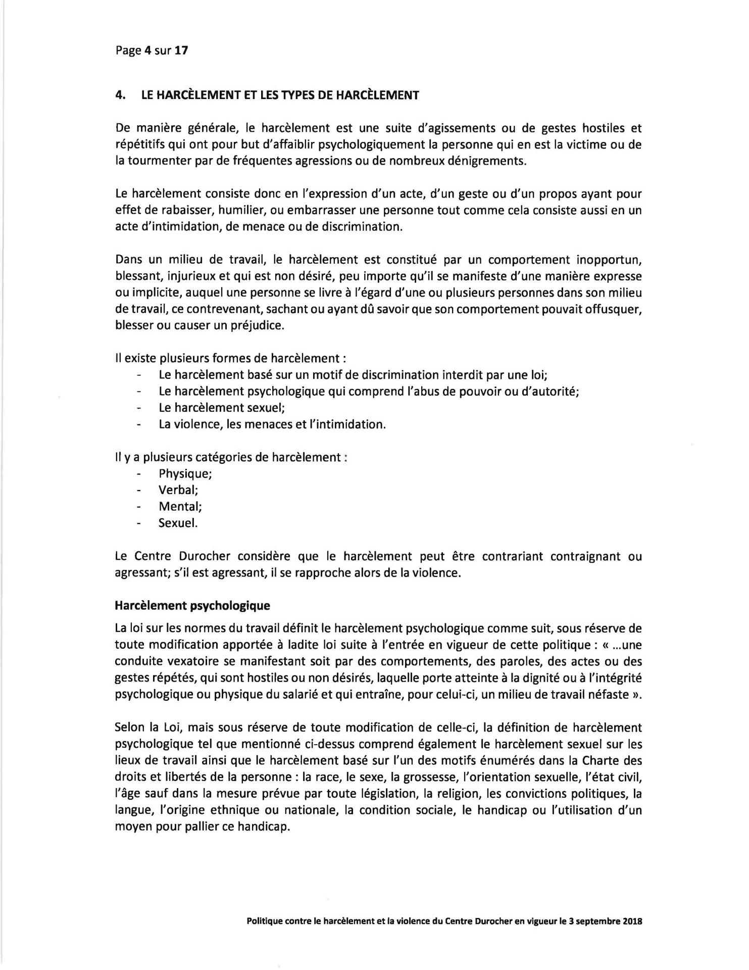 Politique Concernant le Harcèlement et la Violence