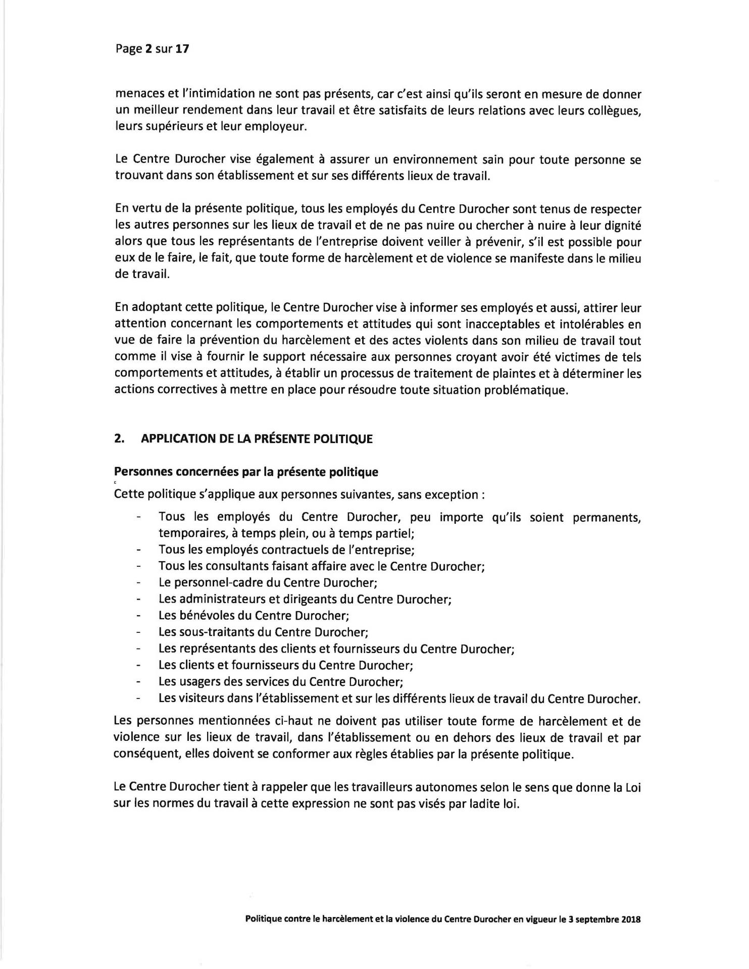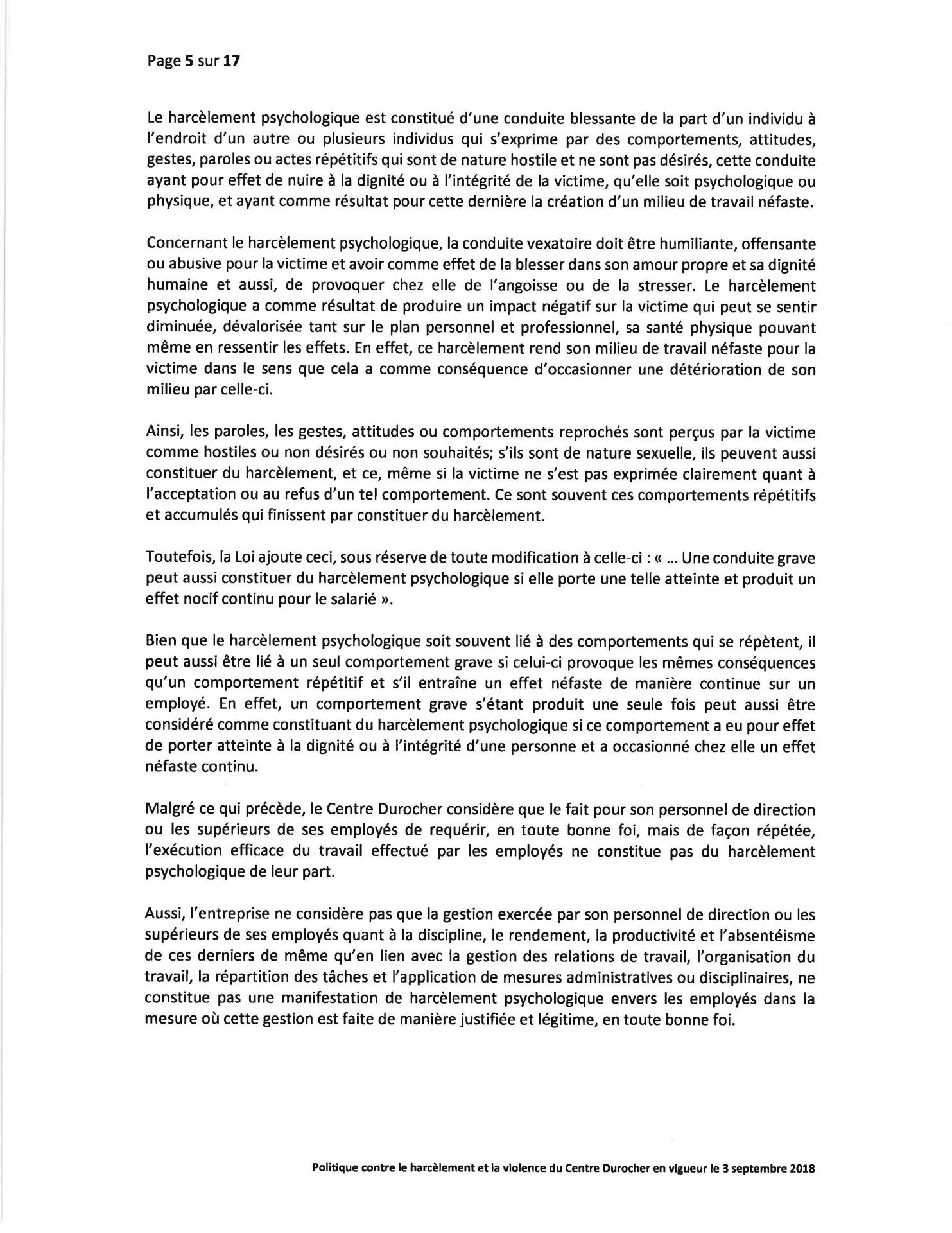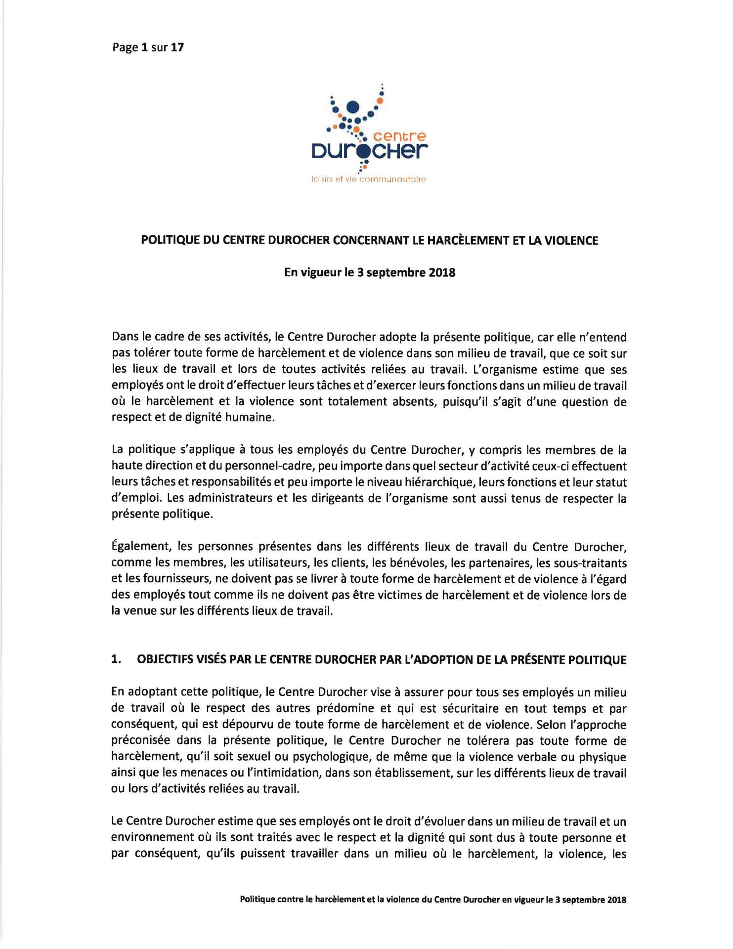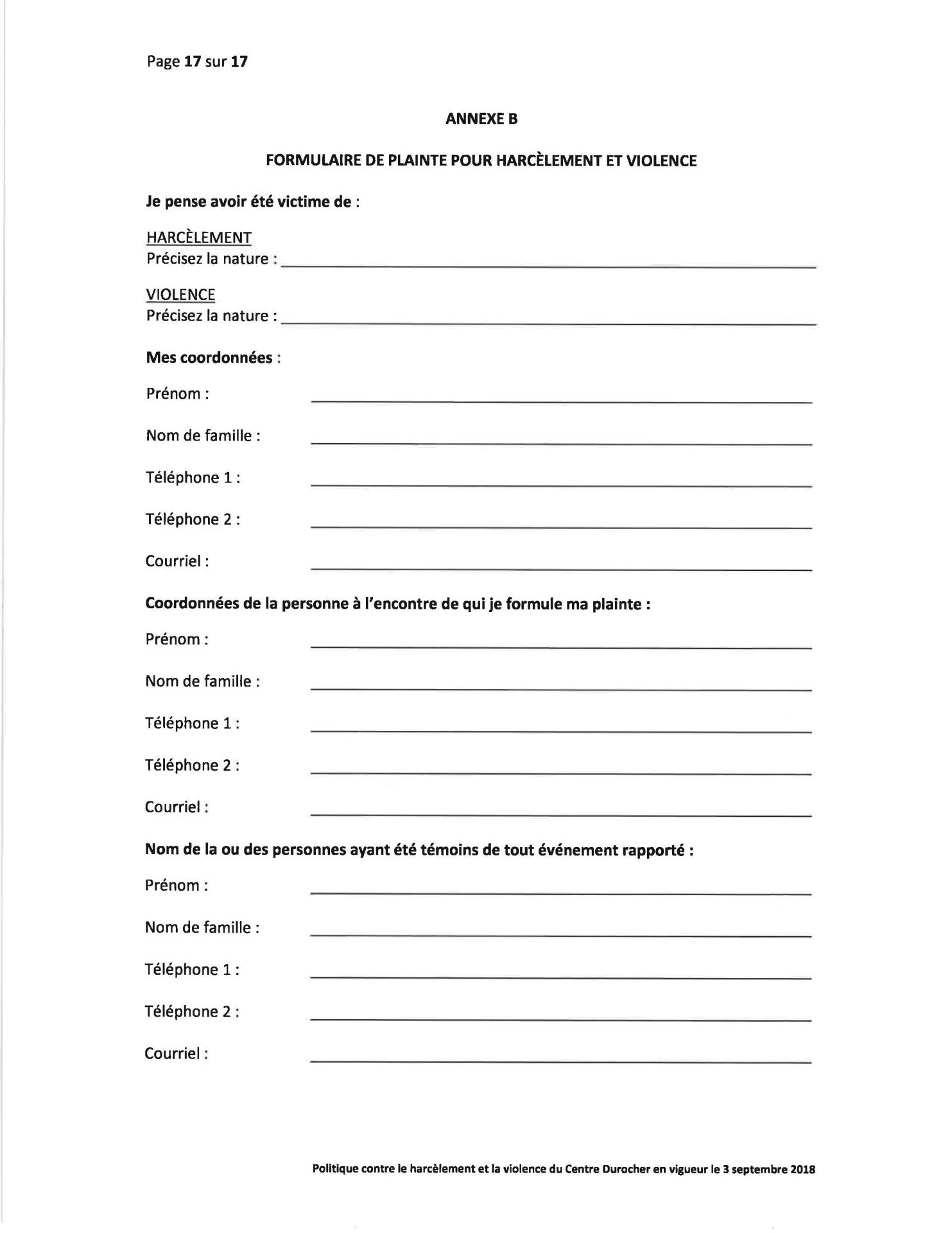 Politique Concernant le Harcèlement et la Violence