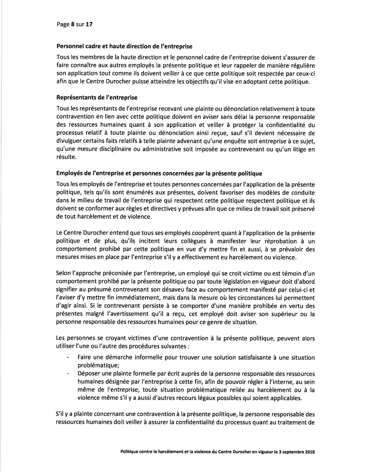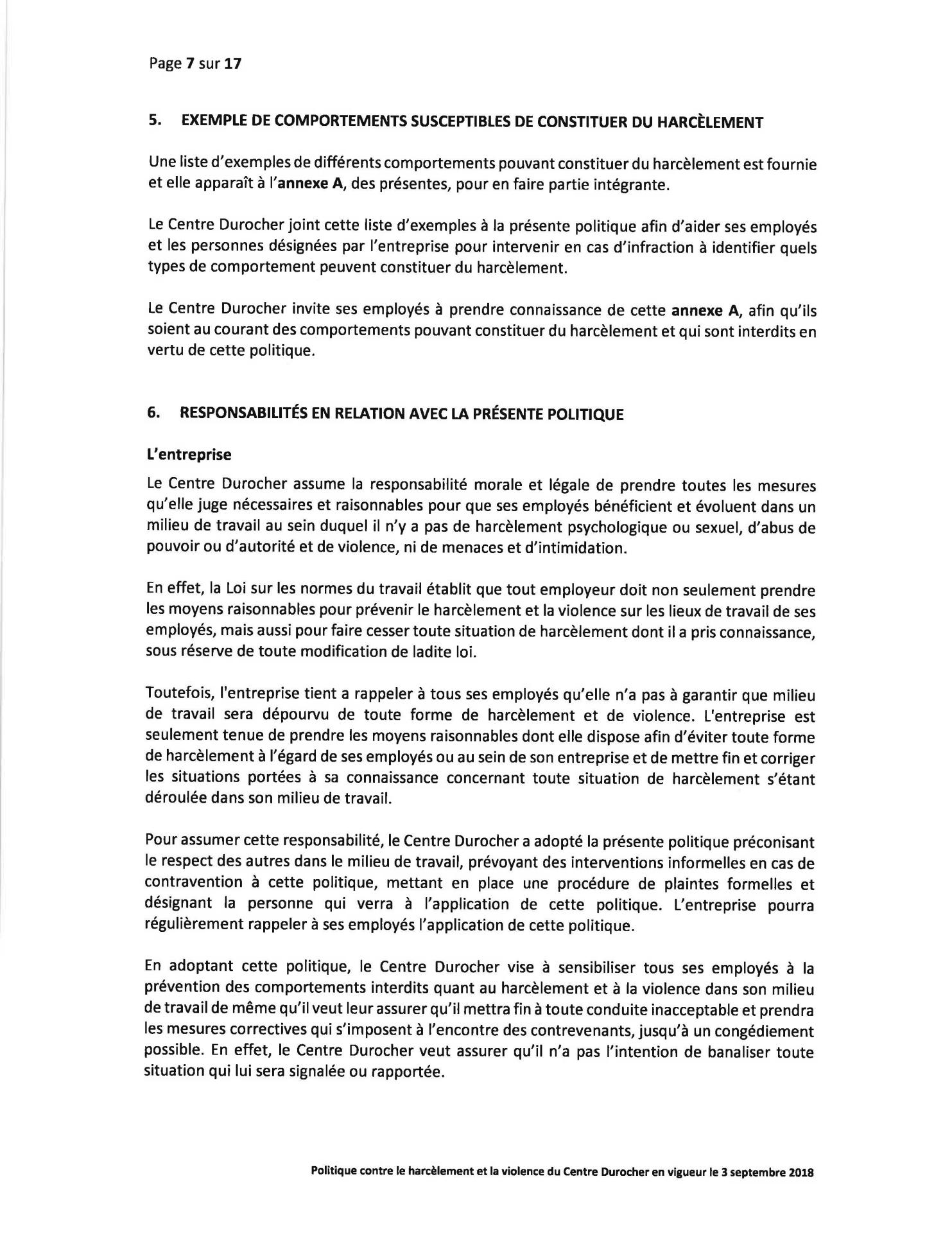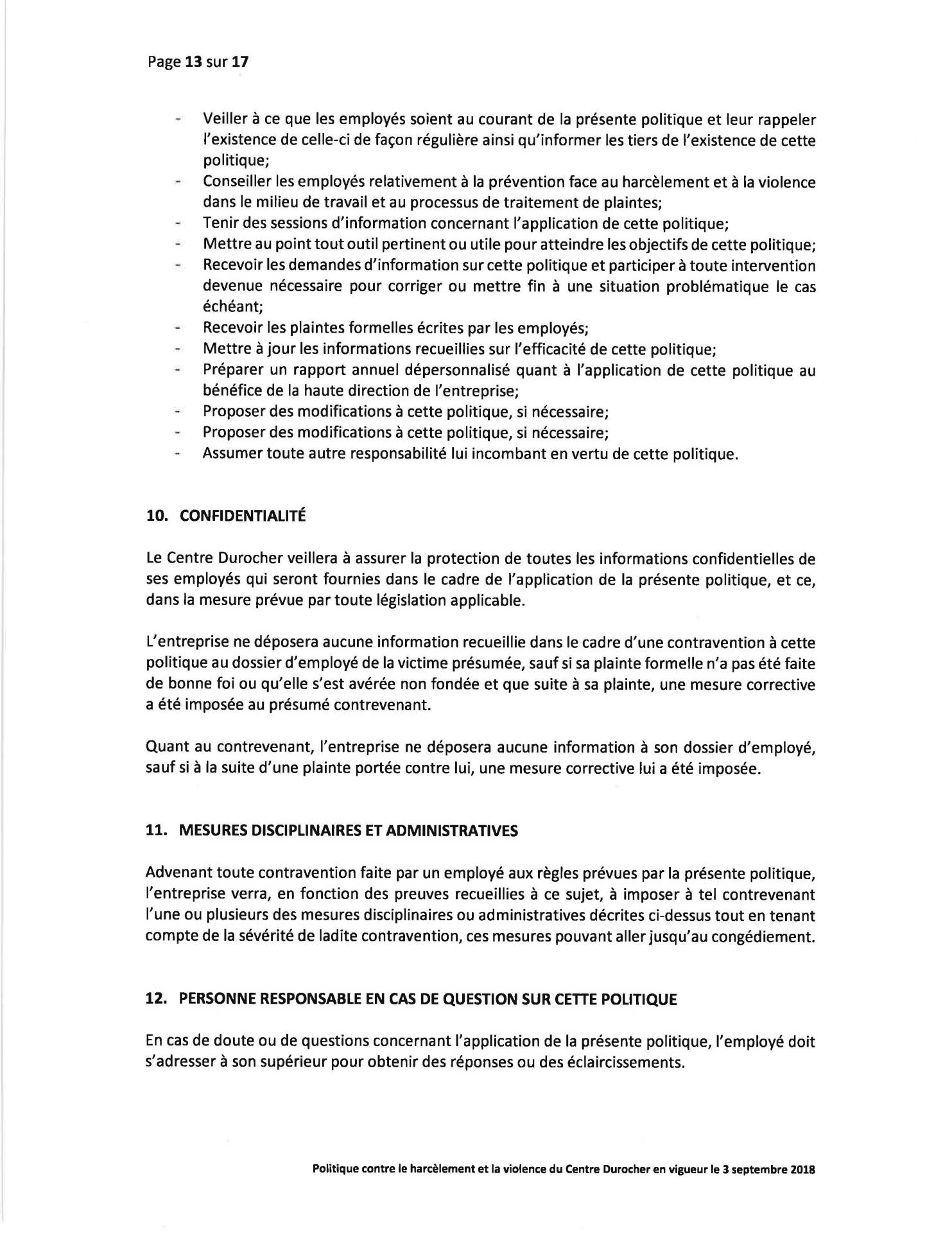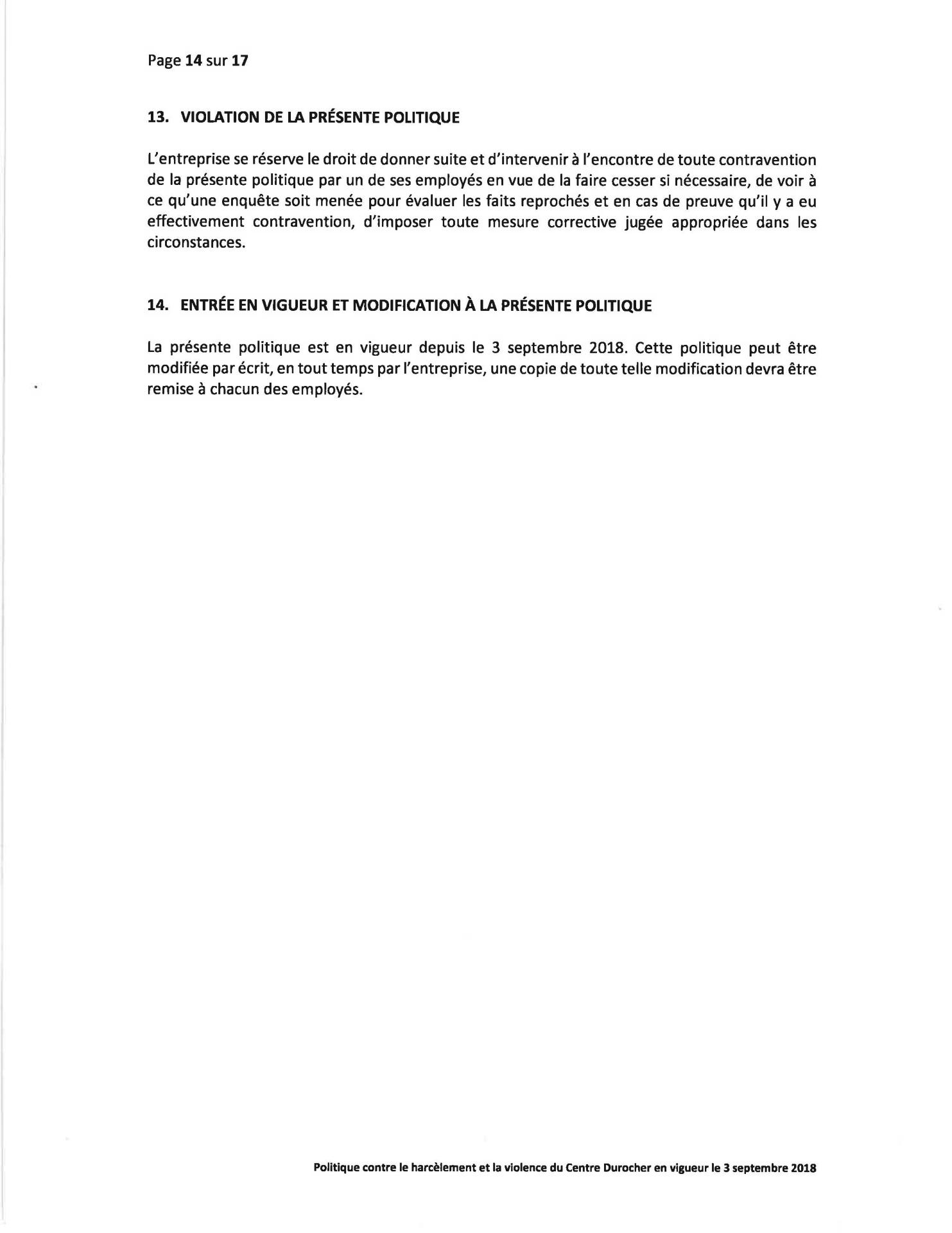 Politique Concernant le Harcèlement et la Violence