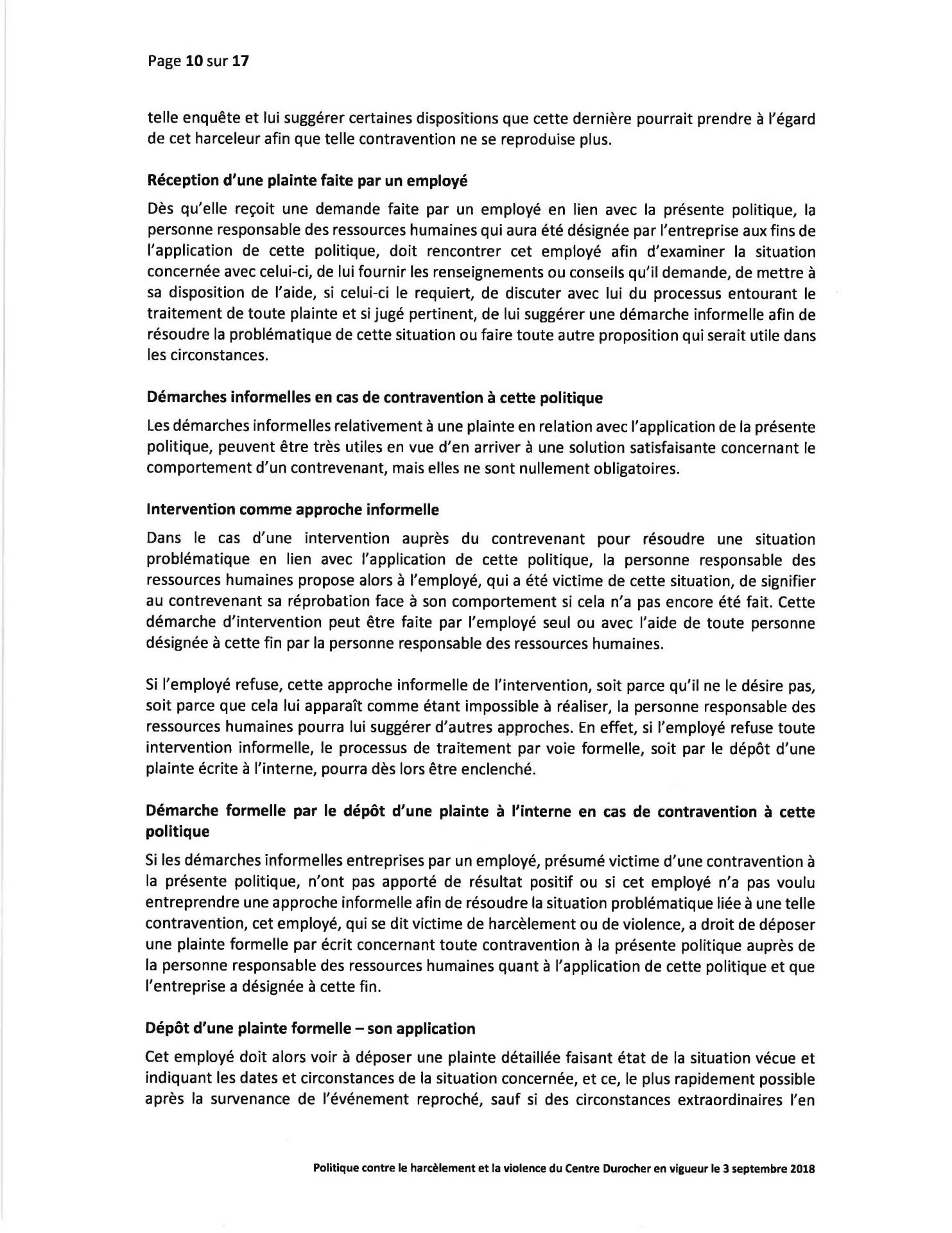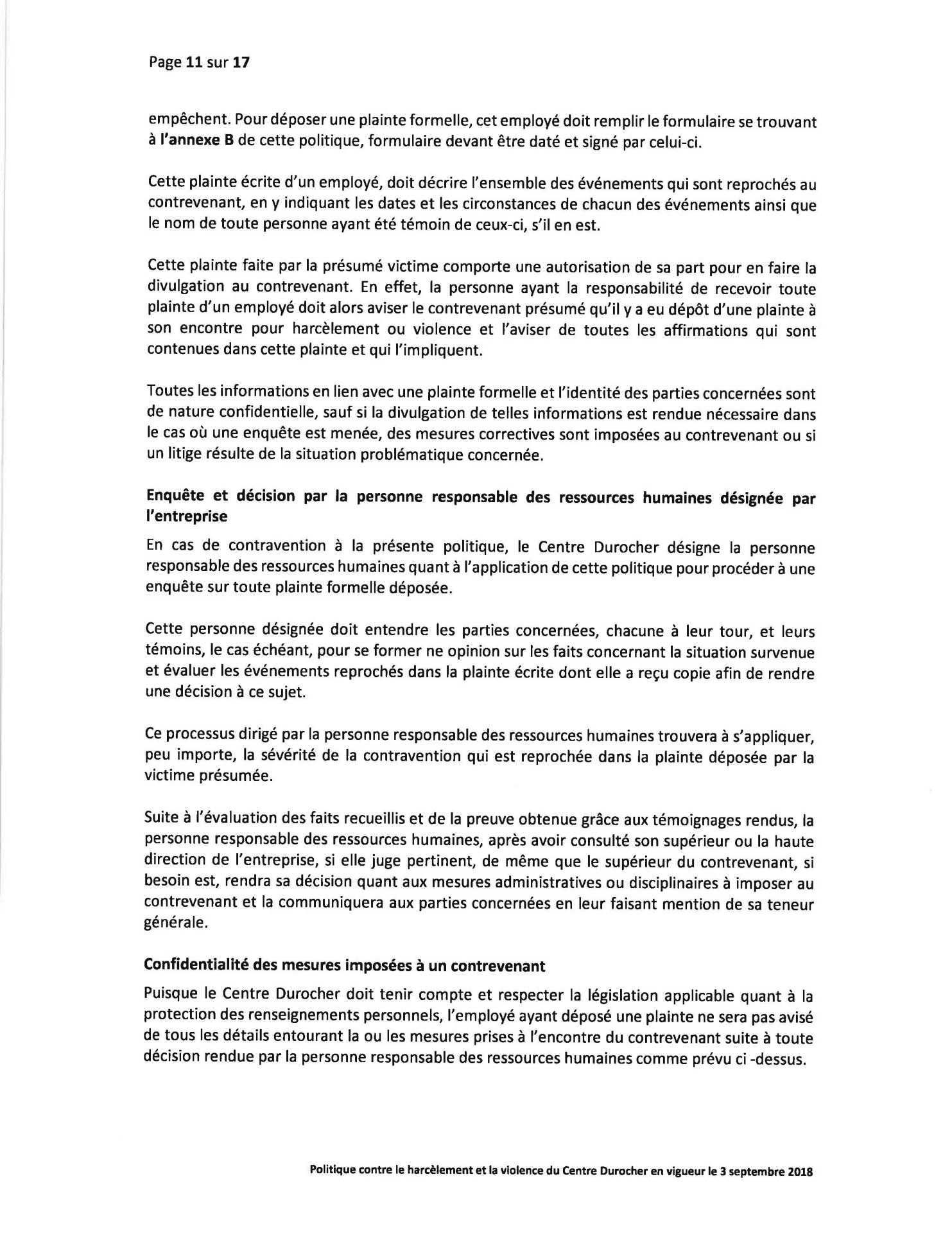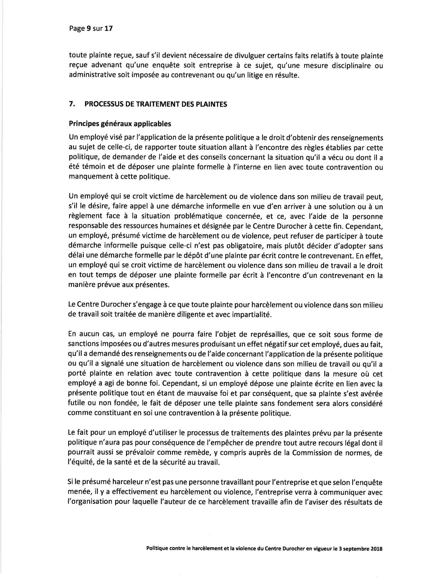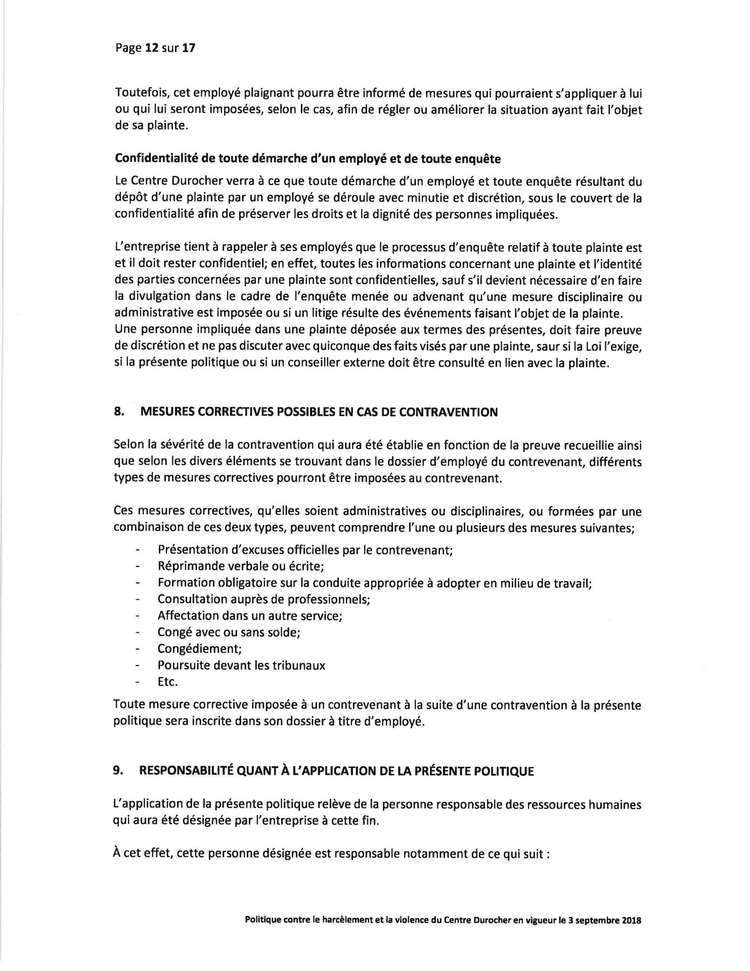 Politique Concernant le Harcèlement et la Violence