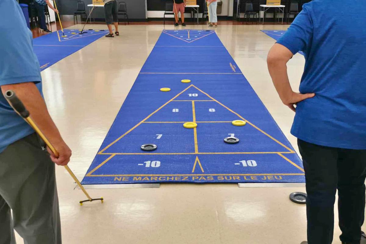 Jeu d’adresse et de stratégie accessible à tous! Les participants s’affrontent en poussant des palets sur une surface lisse afin de les placer dans des zones de pointage, tout en tentant de déloger ceux de leurs adversaires.